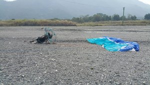 民國108年1月27日,一架超輕型載具(動力飛行傘),機上載有操作人1人,0705時自屏東縣賽嘉飛行降落場起飛,約20分鐘後降落;約於0800時第二次起飛,約0830時自東北向西南沿口社溪上空進行低空飛行時,載具前輪撞及橫跨口社溪之電線後墜落河床,載具損毀,操作人受傷送醫。