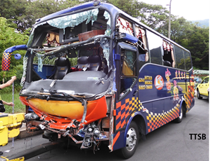 - 事故發生前之事故車輛時速達51公里/時,已超過該檢測基準中動態測試衝擊時速30至32公里/時之設定,故仍可在通過檢測基準規範的情況下,可能因下坡重力加速度、過快的車速以及乘客未繫安全帶而撞擊前座座椅等因素,產生超過檢測基準所規定之撞擊力,造成座椅脫離。