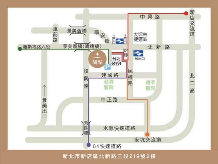 - 捷運:搭乘松山新店線/環狀線大坪林站下車,4號或1號出口,沿北新路往景美橋方向直行至台北矽谷大樓。